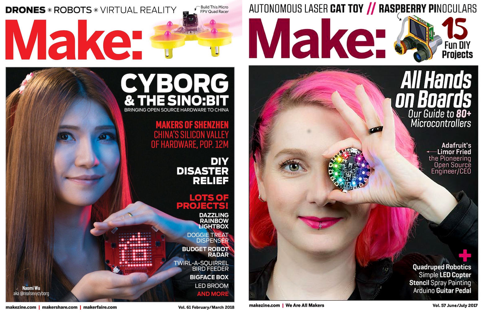 The publisher of Make magazine wrote a post questioning the authenticity of Naomi, suggesting there was a male nerd off camera doing the actual work, things seemed to smooth over, her appearing on the cover of Make. (see the signature exchange at the end of the your video)